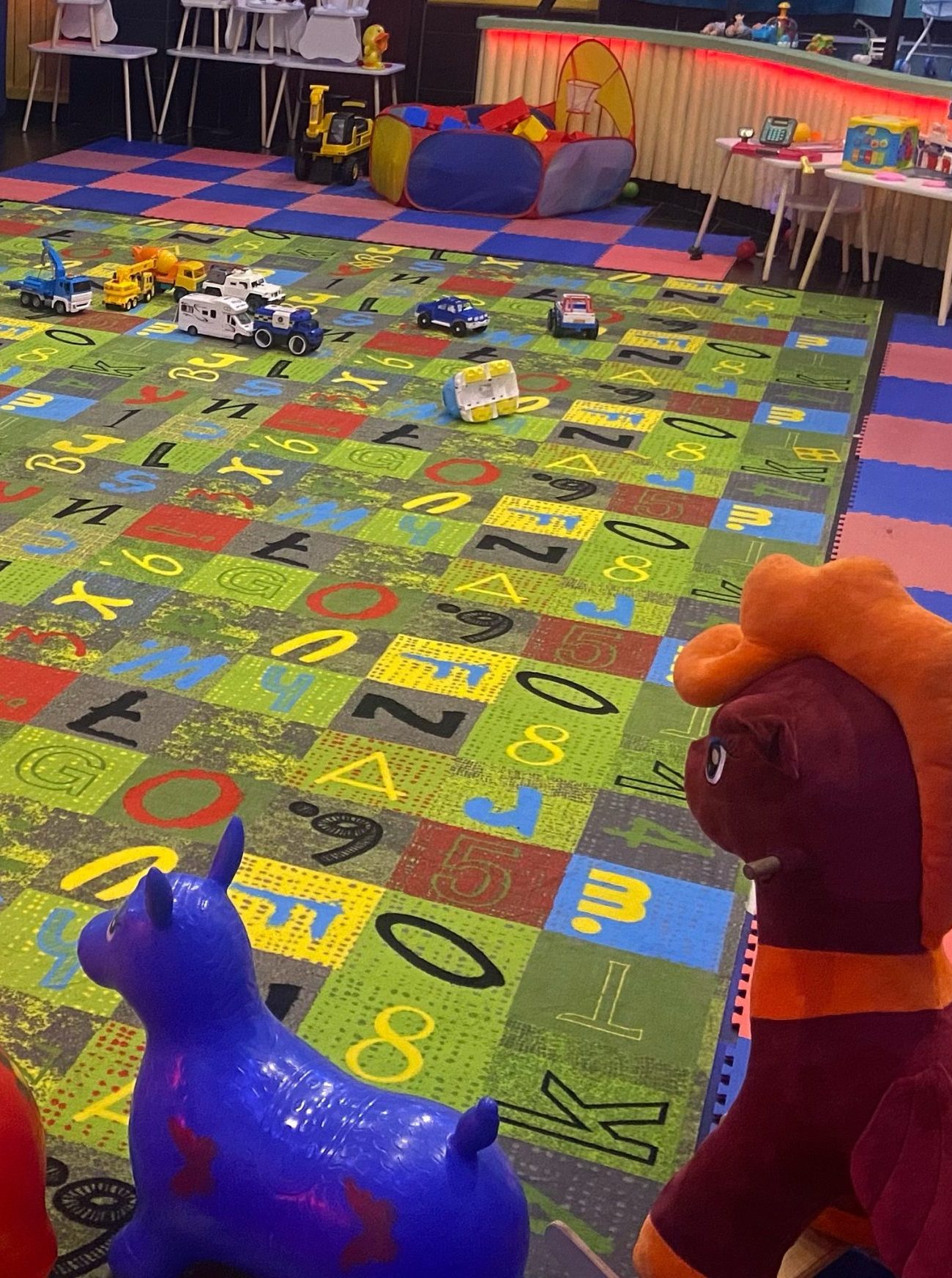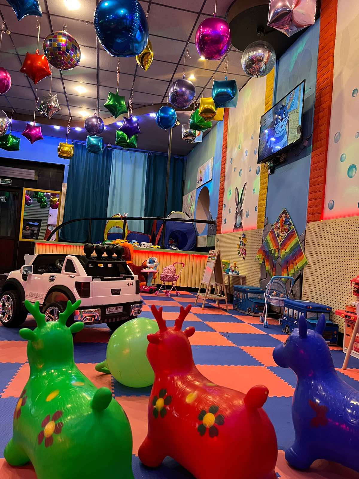- Игровая зона: Увлекательные игры, разнообразные игрушки, большой батут.